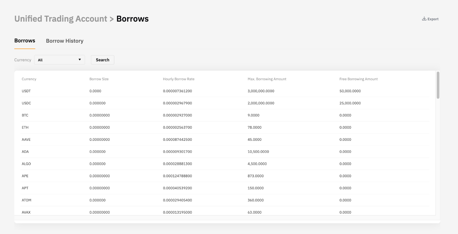 Трейдеры могут найти информацию о почасовых и годовых кредитных ставках для криптозаймов на соответствующей странице криптозаймов и получить больше информации о фиксированных кредитных ставках для каждого токена на этой странице.