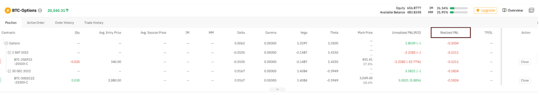 Реализованный P&L — это прибыль и убыток, возникающие при раннем закрытии позиции. Обратите внимание, что реализованный P&L в зоне позиции означает общие прибыль и убыток позиции с момента удержания позиции.