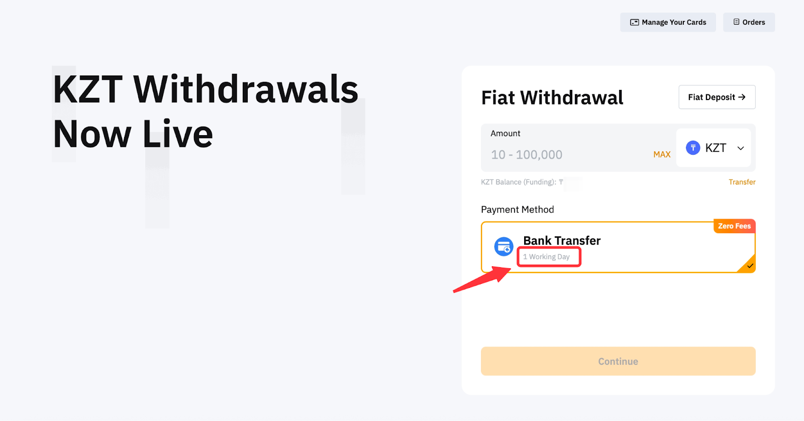 В приложении перейдите на вкладку «Активы» и нажмите «Отозвать», затем перейдите в раздел «Fiat». Затем нажмите Fiat и укажите соответствующее время обработки для каждого способа оплаты.