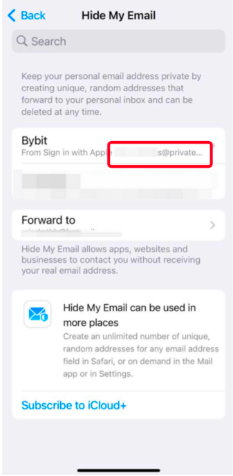 You can login to your Apple ID on your iPhone and select Log In with Apple when you want to login to your Bybit Kazakhstan Account. If you have selected Hide My Email during registration and forgotten your email address, you can check your @privaterelay.appleid.com email address by going to your Apple Settings → iCloud → Apps Using iCloud → Hide My Email, and insert the email address indicated in the email address field. As such, we advise all users to change their commonly used email address once logging in their account for the first time. You can refer to the article How to Change/Unlink Your Registered Email Address for more information.