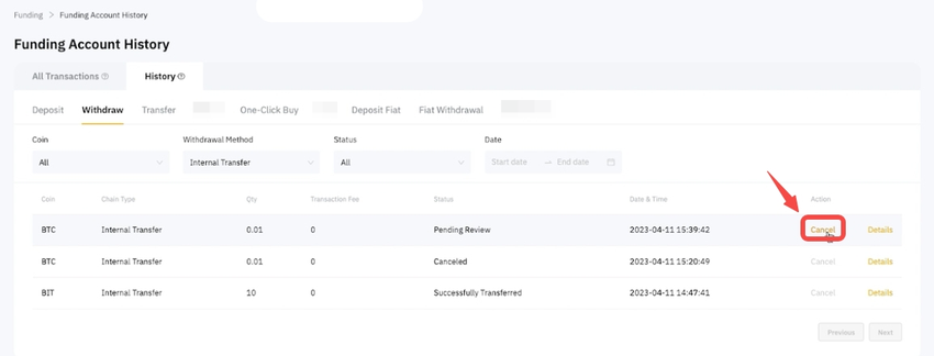 Note: To check if any further action is required for the crypto deposit and withdrawal, please go to the Deposit or Withdrawal History.