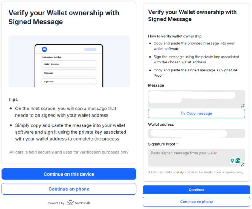 Under normal circumstances, the information provided above is sufficient. However, in certain exceptional cases, the wallet owner may be required to verify ownership by completing the wallet ownership verification process via the link provided, depending on the type of transaction, within the Deposit Account History or Withdraw Account History page. If the wallet belongs to another person, please forward the link to the wallet owner for completion.