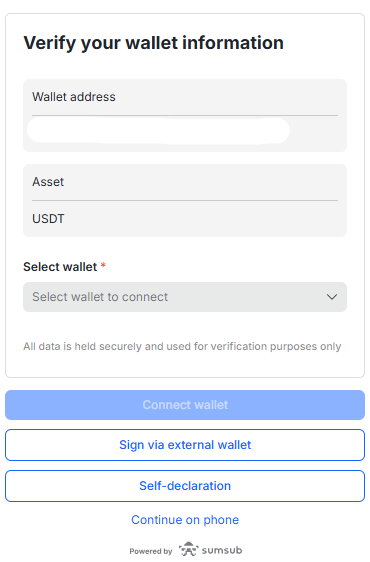 Step 2: Select a method to verify wallet ownership: