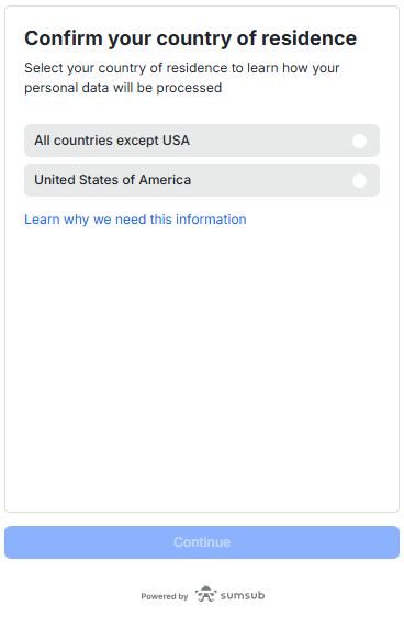 Unhosted/cold wallet | Step 1: Confirm the country of residence of the wallet owner.