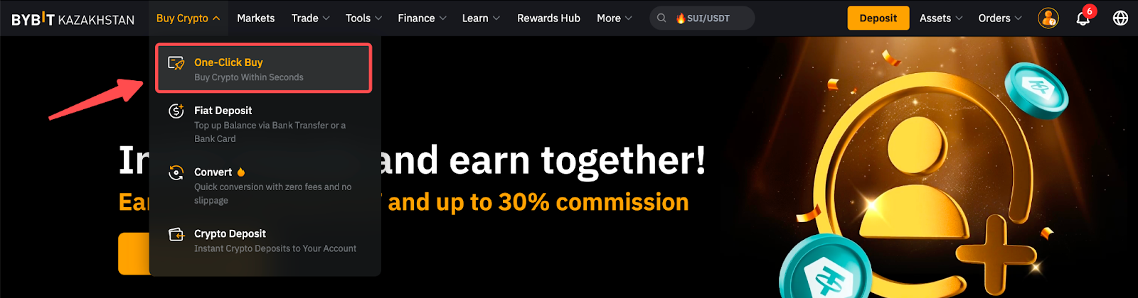 One-Click Buy on the Bybit Kazakhstan site allows users to buy and sell crypto using KZT fiat currencies through Fiat Balance. However, only BTC, ETH, USDT and USDC are supported on the Bybit Kazakhstan site.