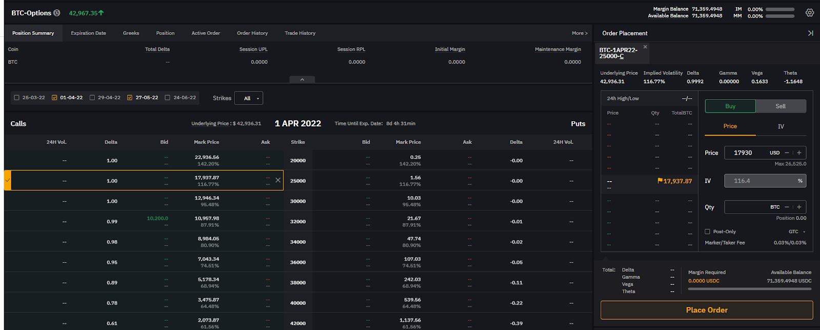 Before you start to trade USDC options, please ensure that you have transferred USDC to your USDC account.