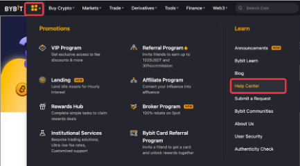 Step 1: Hover to the upper left corner to look for Help Center → Select Crypto Deposit not credited, and you will be redirected to the Self-Service page.