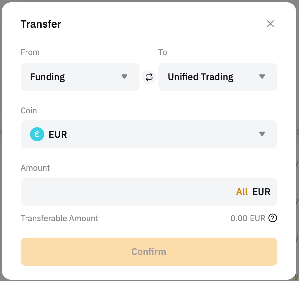 Step 2: Make sure the selected accounts and fiat currency are correct, then enter the amount to be transferred. Next, click on Confirm.