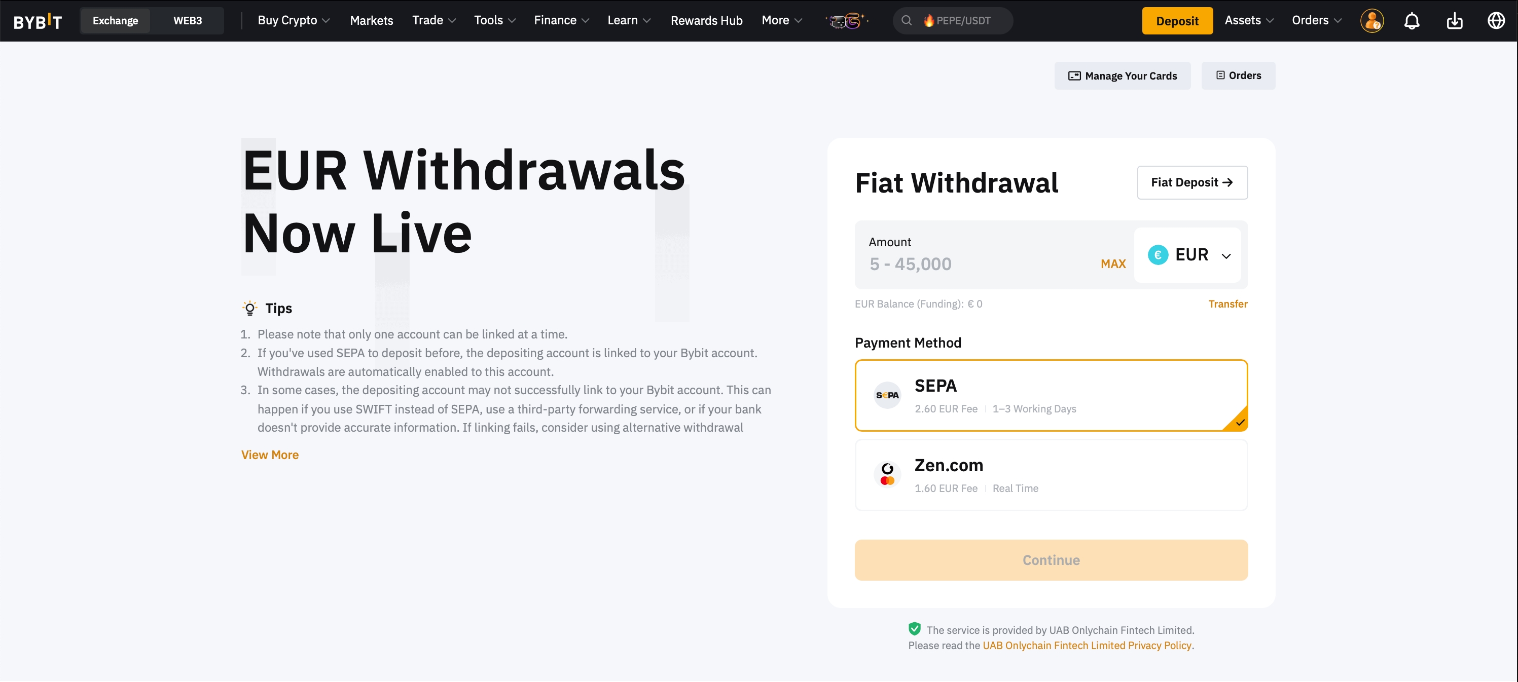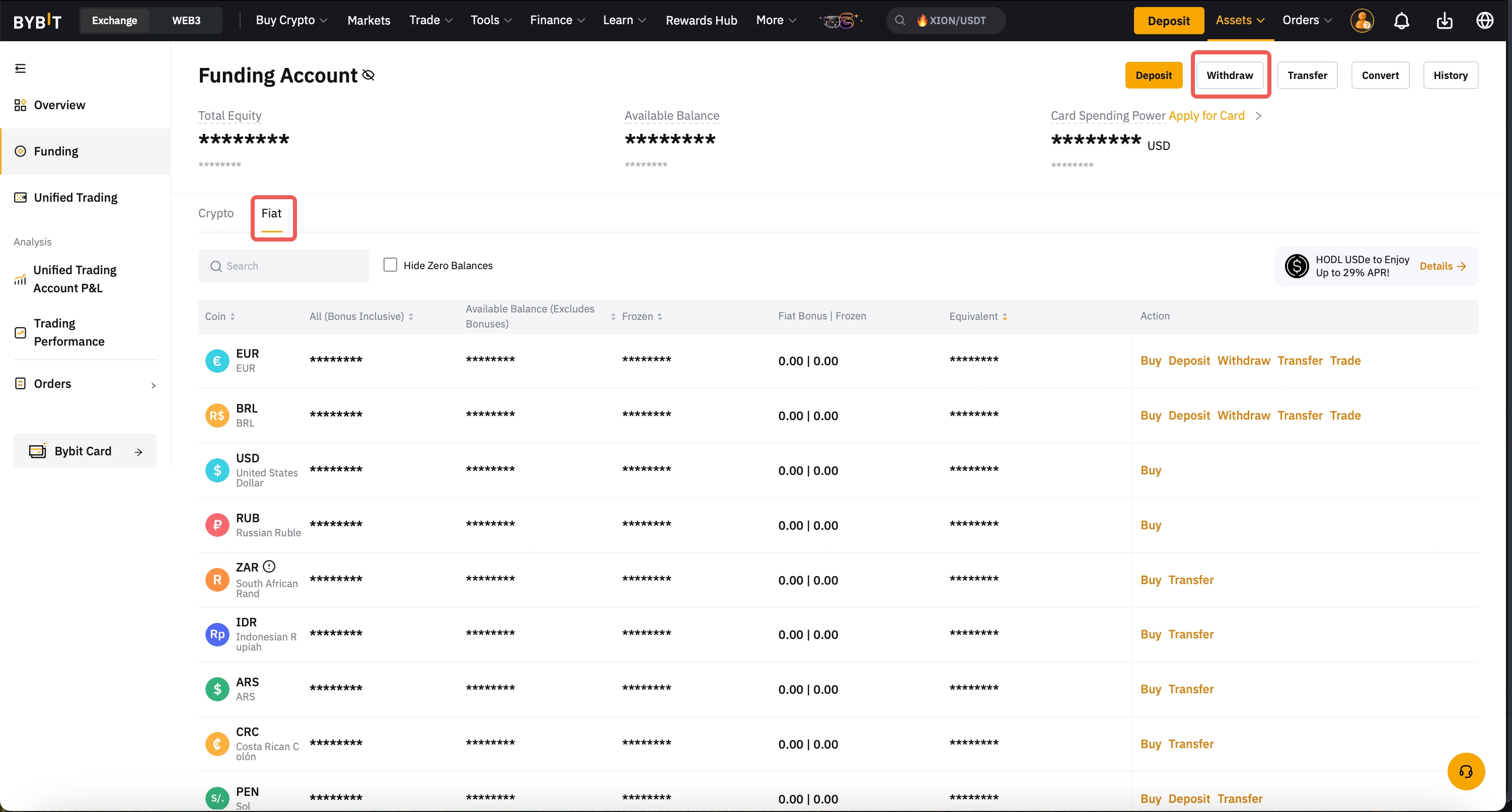 Bybit provides a variety of fiat deposits to make it easier for you to trade instantly via Fiat Balance. The procedures for depositing funds in different fiat currencies are slightly different. For more details, please visit here.