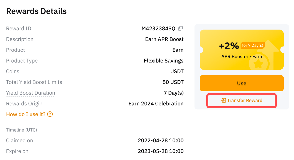 Step 2: Select the reward to view its details and whether it supports transfers. You can click on Transfer Reward if it is transferable.