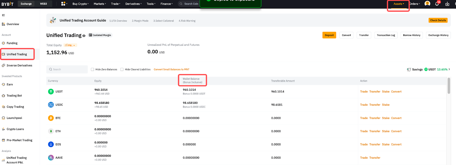 To check the balance of the claimed Bonus, click on Assets on the top right-hand corner of the home page and select the Wallet accordingly.