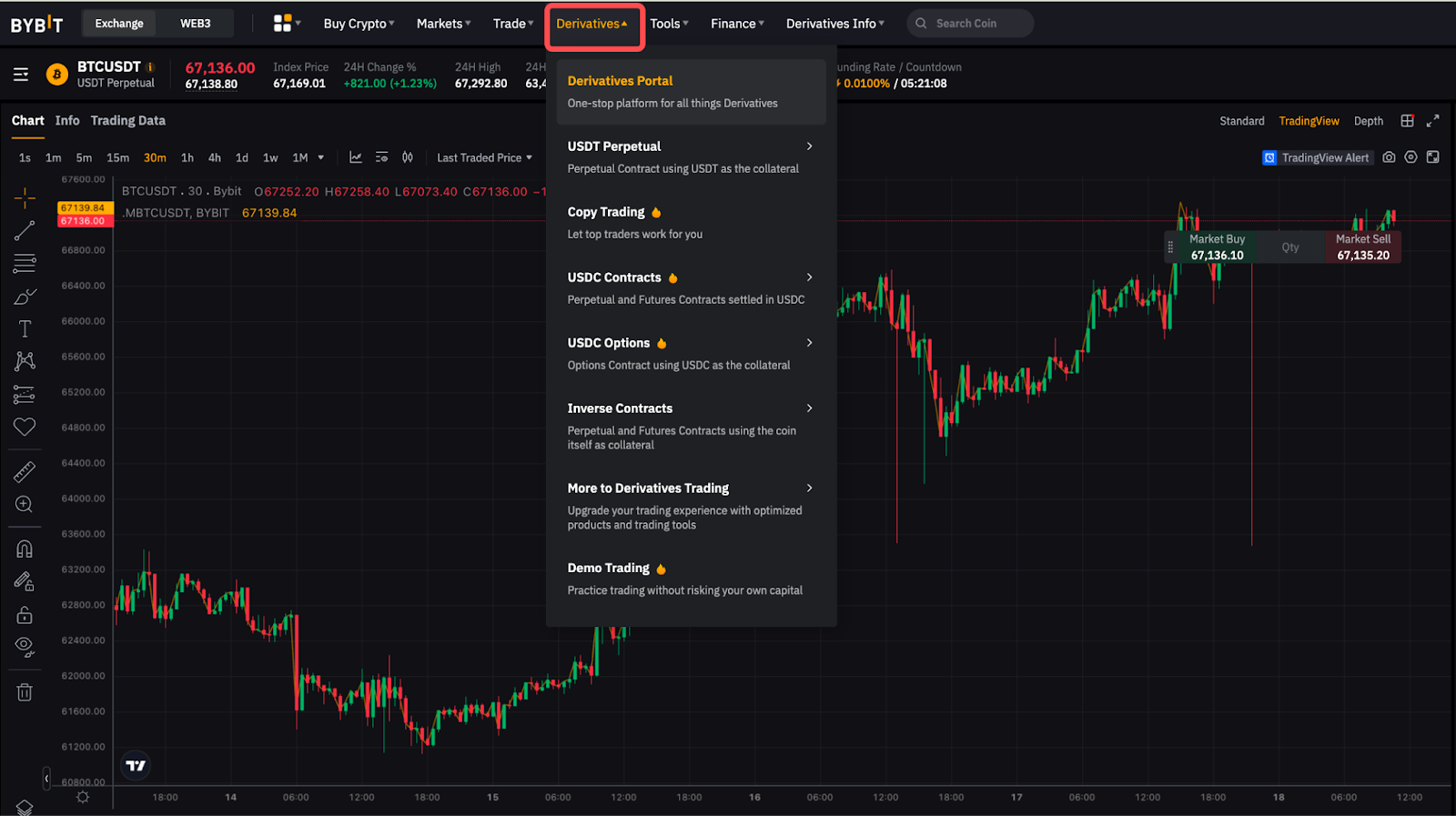Step 1: Hover your cursor over the Derivatives tab and click on your desired contract type, which will bring you to the corresponding trading interface.