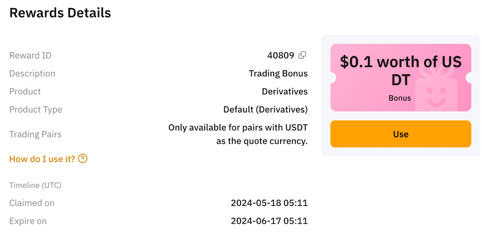 Note: The bonus will be used before your own capital when deducting the corresponding trading fee or funding fees. However, any open position will occupy your own capital as position margin before using the bonus. You are not obligated to manually select the bonus, as it is automated.