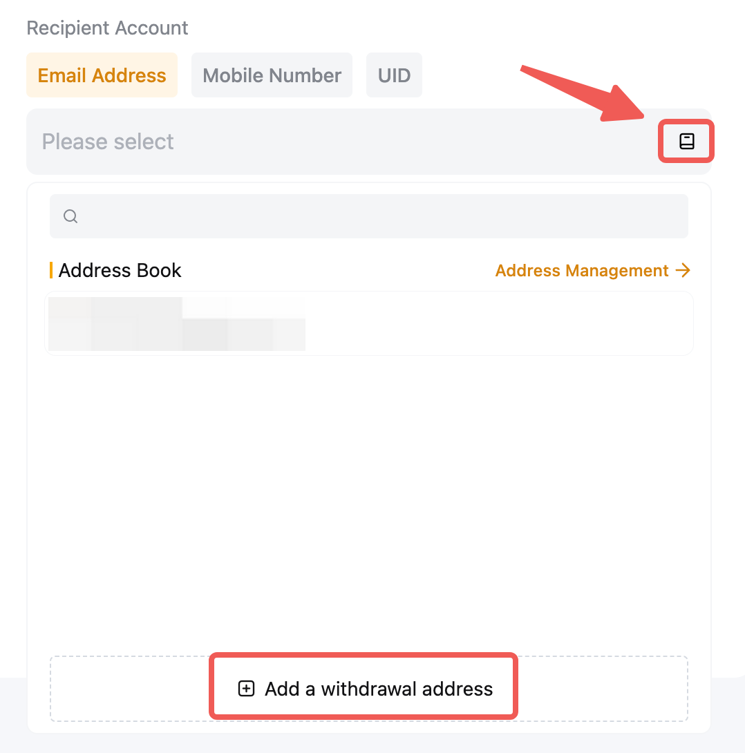 — You can also add an email address, UID or mobile number to your wallet address book by clicking on Add. For more details, please refer to How to Add a Withdrawal Wallet Address.