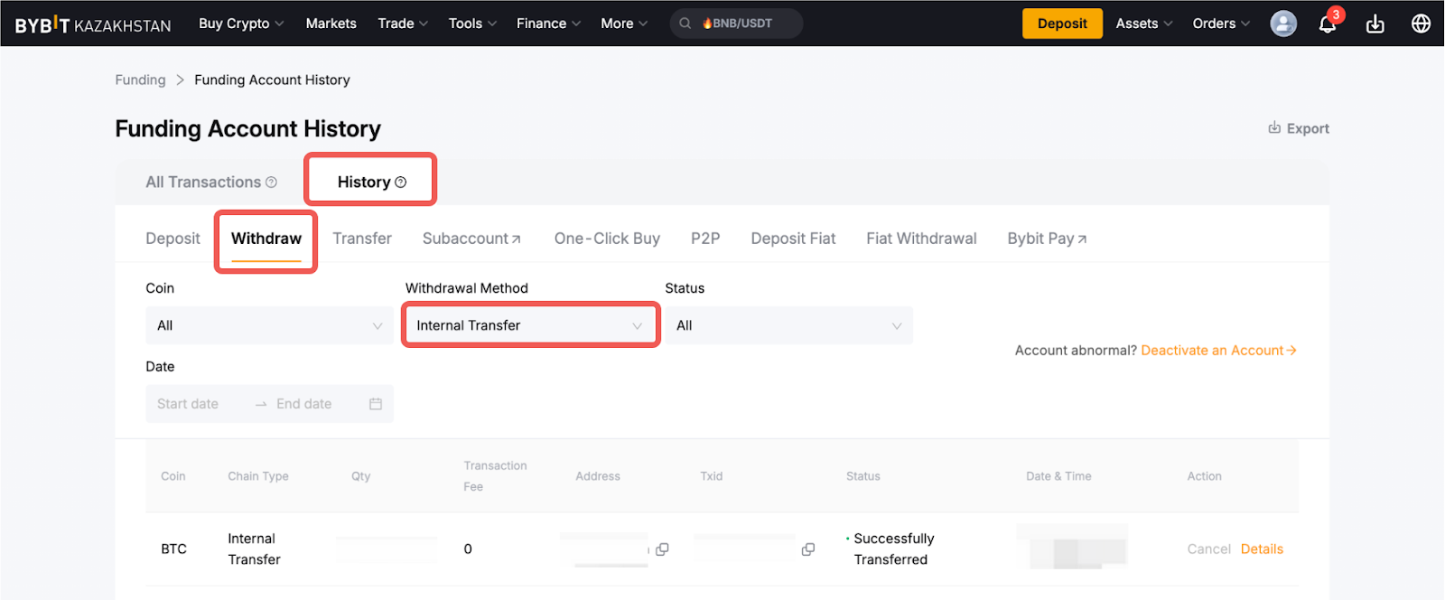 Here’s a step-by-step guide to withdrawing assets on Bybit Kazakhstan via Internal Transfer.