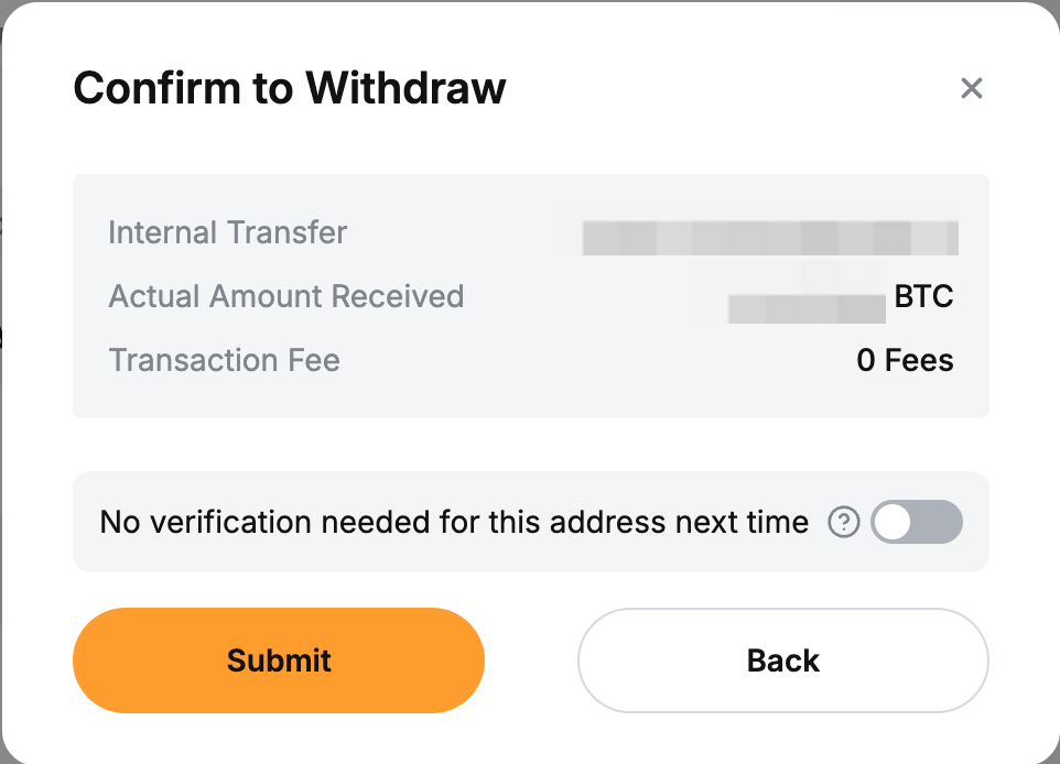 Step 3: Click on Submit on the pop-up window, and you’ll be directed to the withdrawal verification page.