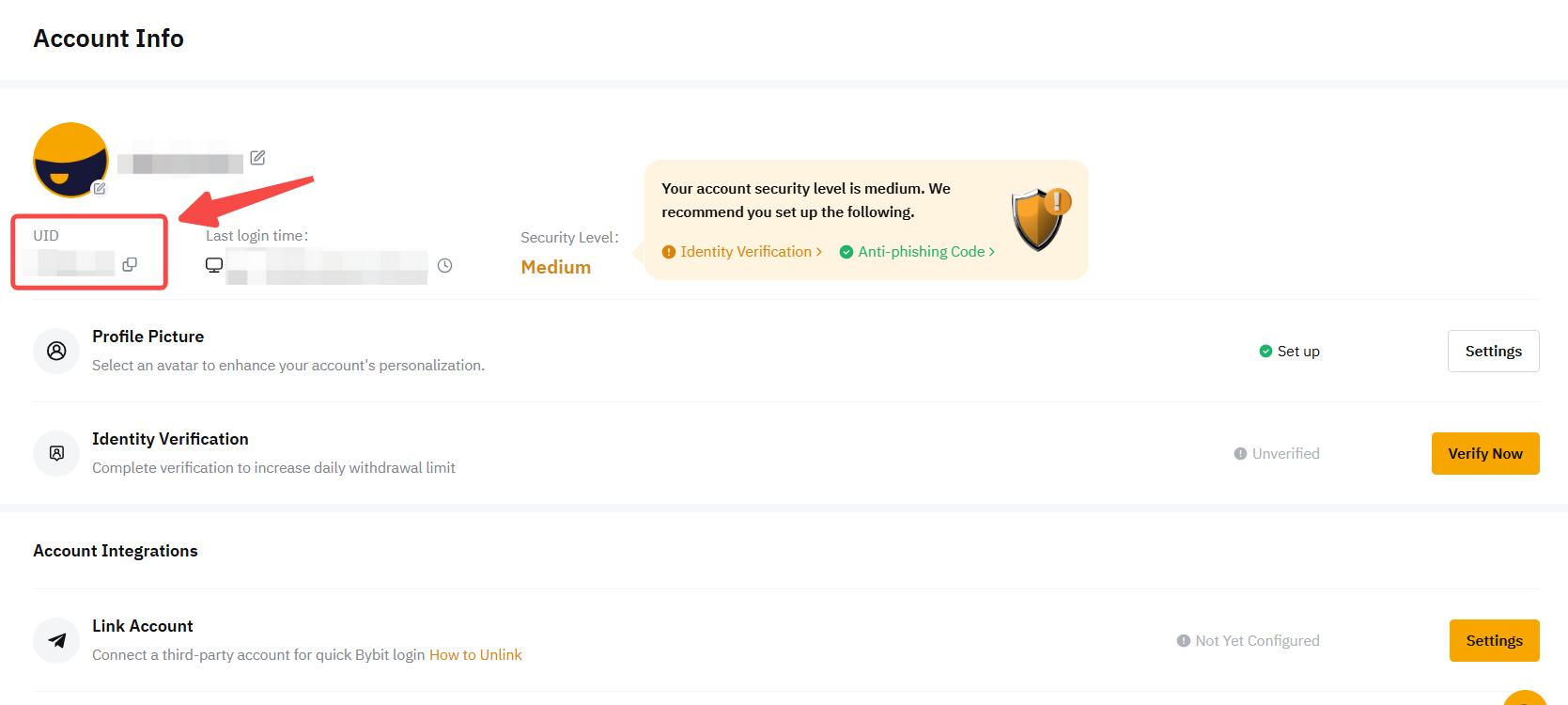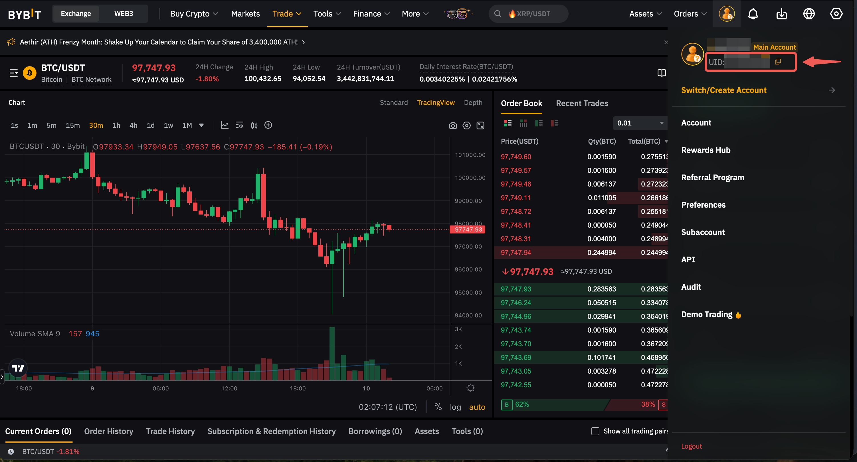 Method 2: From the top right corner of any Bybit Kazakhstan webpage, navigate your cursor to the “Profile” icon, and you will be able to see your UID from the dropdown menu.