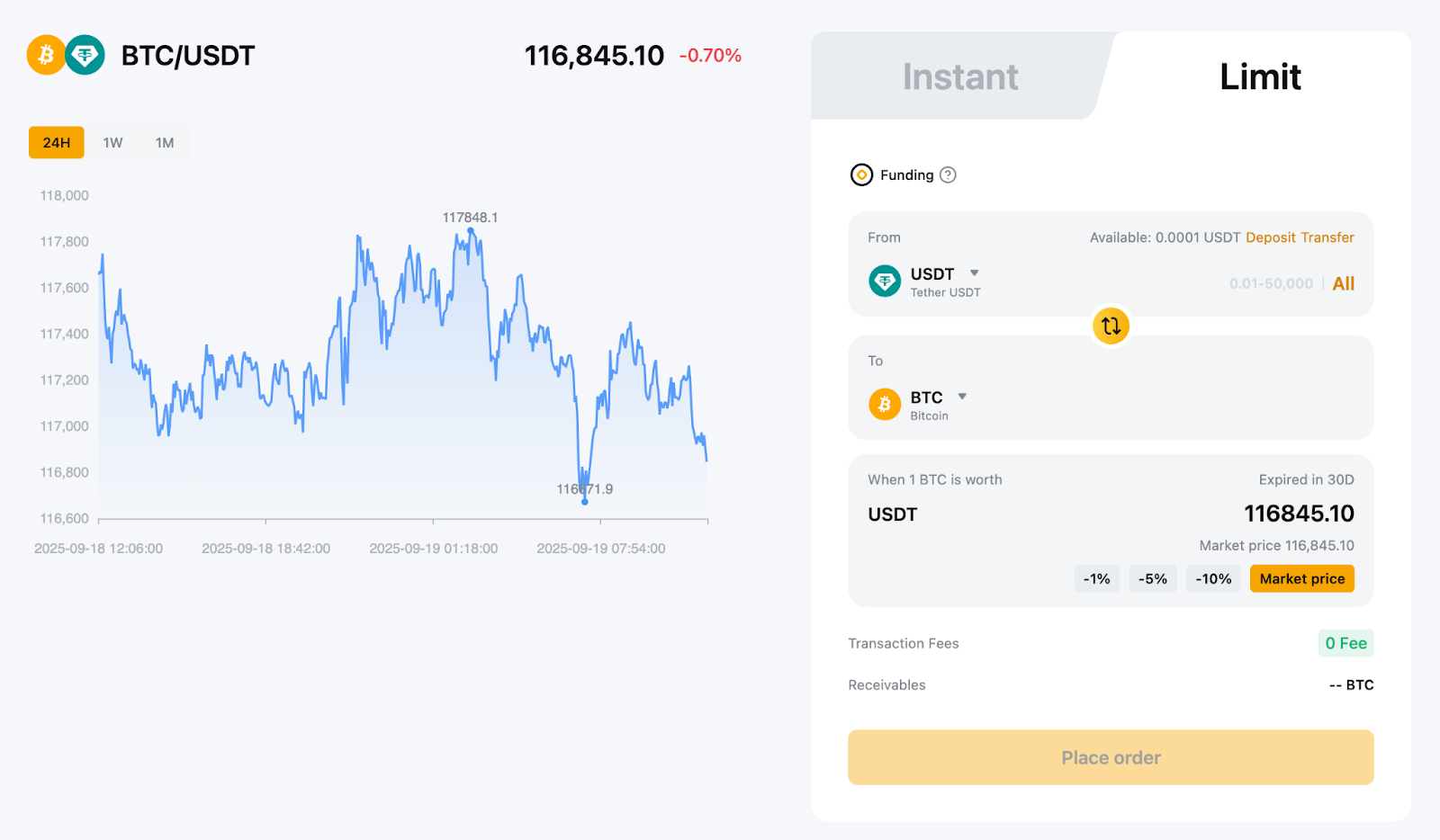 Limit mode: You can set your preferred price, and the conversion will only be executed when the market quote matches your limit price.