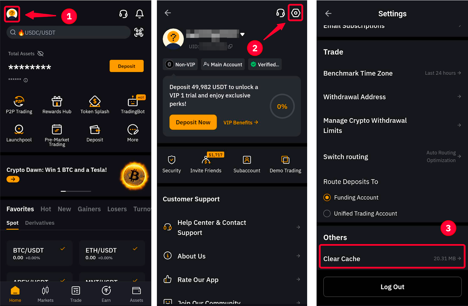 — Go to the profile icon at the top left corner of the homepage. Click on Settings and then select Clear Cache to clear your phone’s cache.