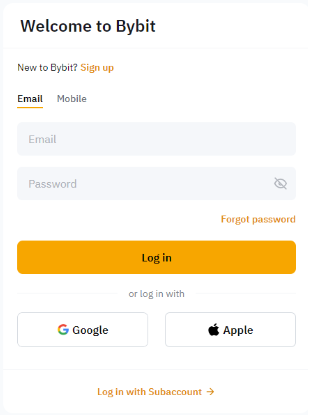 Step 1: Log in to your account via Bybit Kazakhstan’s website/App. To do this, enter your registered email address or mobile number and your login password.