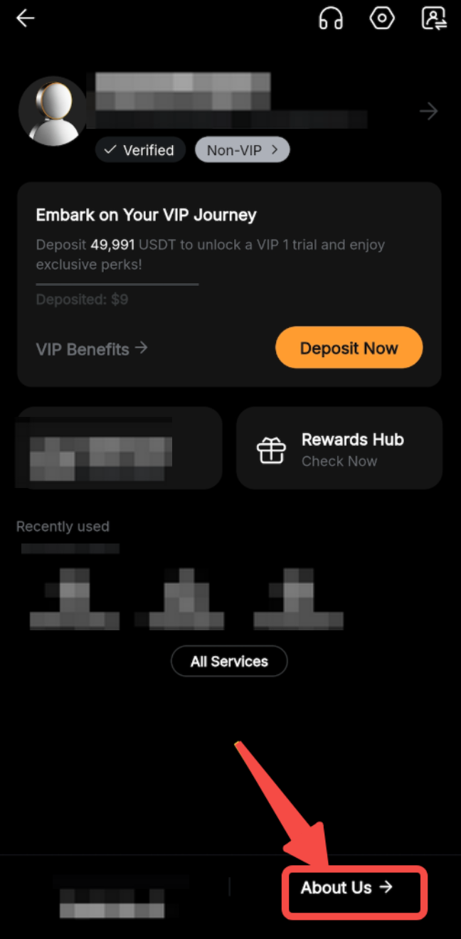 Step 2: Scroll down the menu and select About Us.