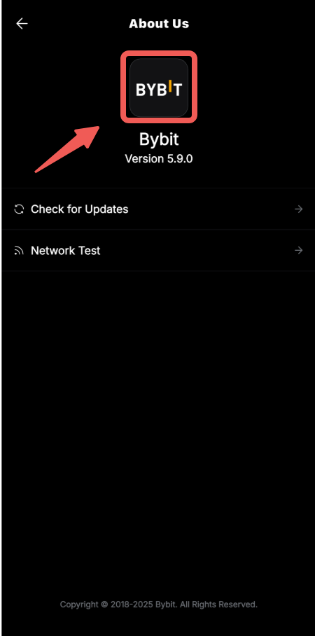 Step 3: On the About Us page, double-tap the Bybit Kazakhstan logo near the top of the screen. This will open a hidden “Send Log” option at the bottom of the page.