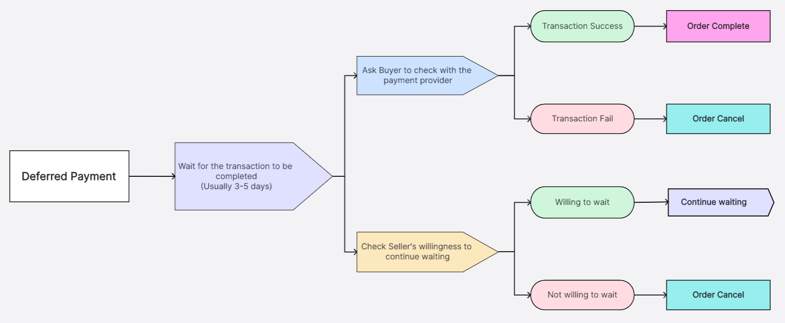 For the Seller: Ask to wait for payment processing. If the seller prefers not to wait any longer, we will assist in canceling the order after validating the seller's proof of payment not received.
