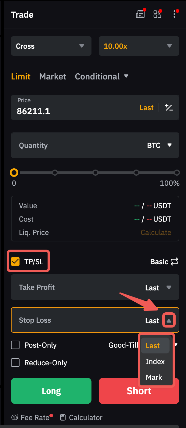 Чтобы узнать о некоторых преимуществах и недостатках использования каждой инициирующей цены для провоцирования стоп-убытка, см. статью: Каковы плюсы и минусы использования LTP или Mark Price для запуска условных заказов?