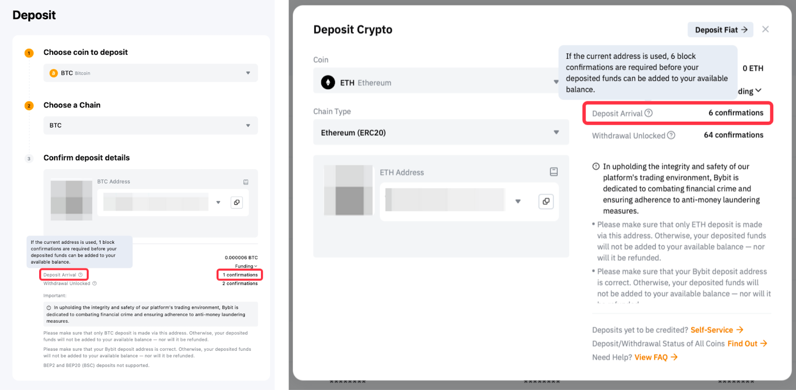 Bybit Kazakhstan Қазақстан әртүрлі монеталар үшін белгілі бір блокчейн растаулар санын талап етеді, олар сіздің Bybit Kazakhstan Қазақстан әмияныңызға аударылатын соманы несиеге алмай тұрып қажет.
