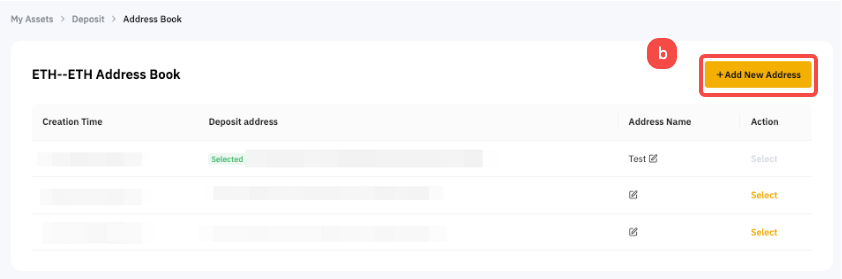 Мекенжай атауын орнату үшін Мекенжай кітабын басқаруға болады немесе депозит бетінің жоғарғы нұсқасында қалаулы мекенжайды орнатуға болады.