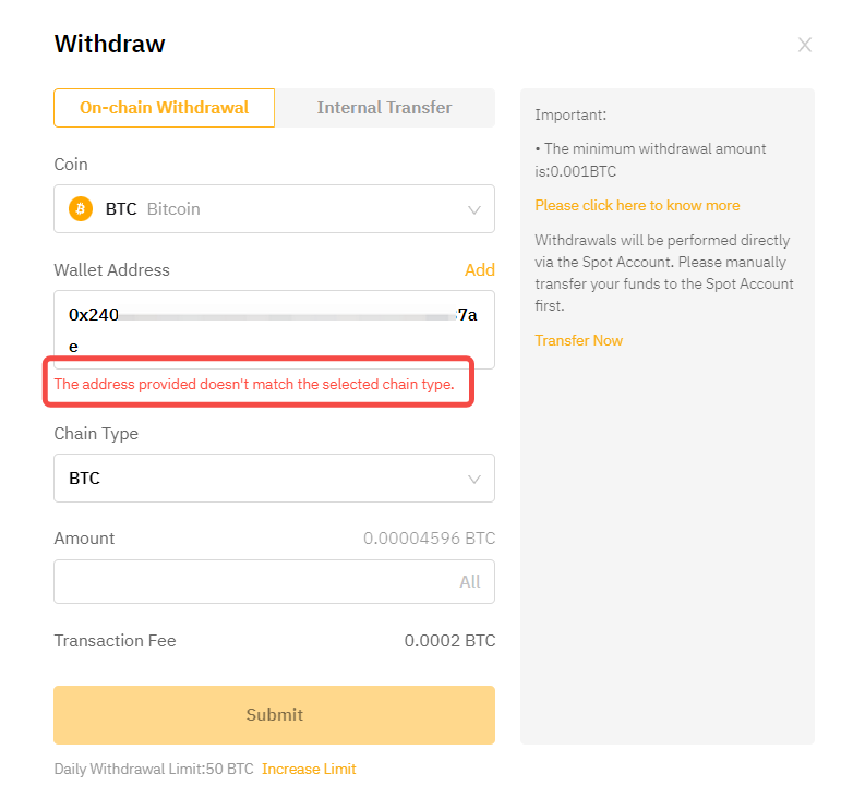 Егер шығару мекенжайы таңдалған блокчейнге сәйкес келмесе, шығару сұранысы автоматты түрде қабылданбайды. Қаражатты жібермес бұрын, мекенжай мен блокчейннің дұрыс көрсетілгеніне көз жеткізіңіз. Егер қиындықтар туындаса, қаражатты алушыдан нақты мекенжай мен блокчейн деректерін сұрап алыңыз.
