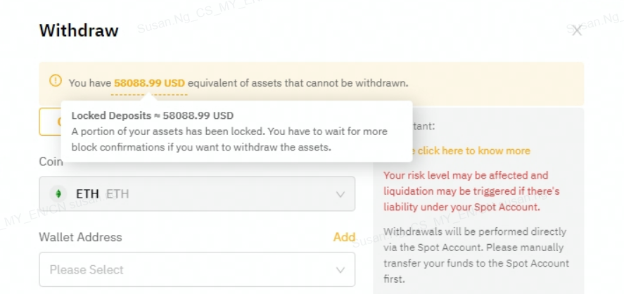 Барлық депозиттер үшін қысқа мерзімді бұғаттау кезеңі қарастырылған. Бұл кезеңде салынған монеталарды шығару немесе Қаржыландыру шотына аудару мүмкін емес. Қажетті блок растамалары алынғаннан кейін бұғаттау автоматты түрде алынады.