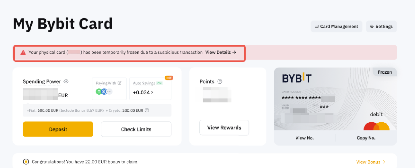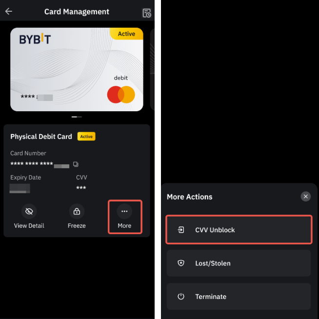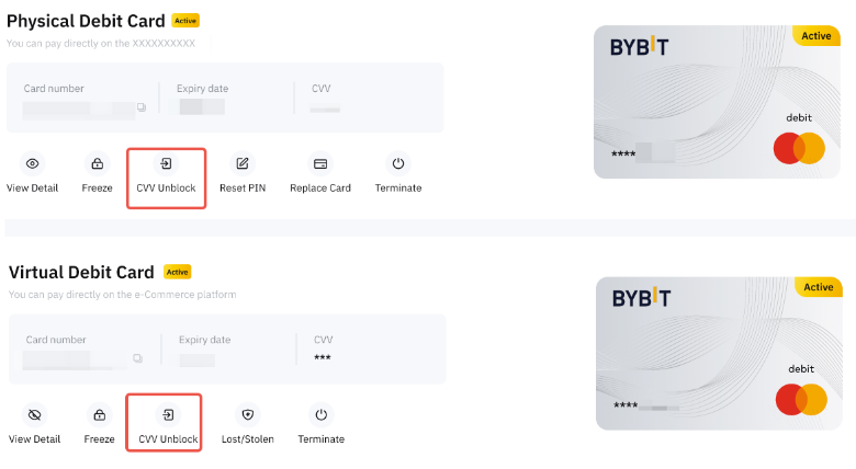 - Bybit картаңызды қолданбайтын кезде бұғаттаңыз (бұғаттан шығарғаннан кейін дереу қолдана аласыз).