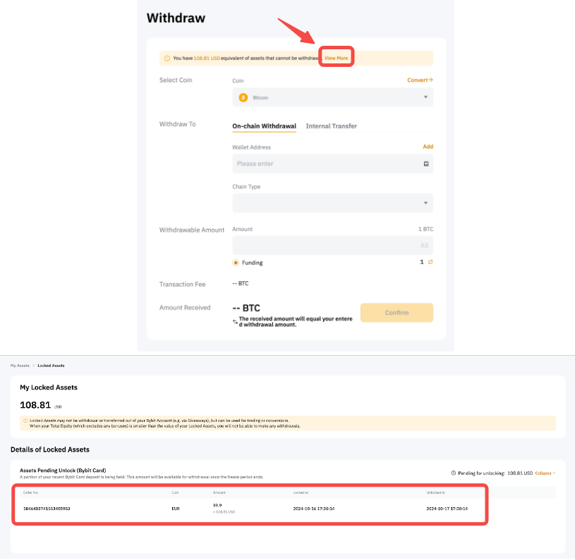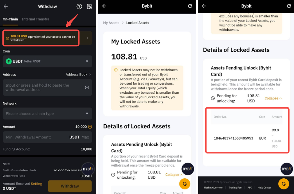 Қаражатыңыздың қауіпсіздігін қамтамасыз ету үшін Bybit картасына жасалған кез келген тікелей депозиттер 24 сағатқа бұғатталады. Мәліметті Менің бұғатталған активтерім бетінен тексере аласыз.