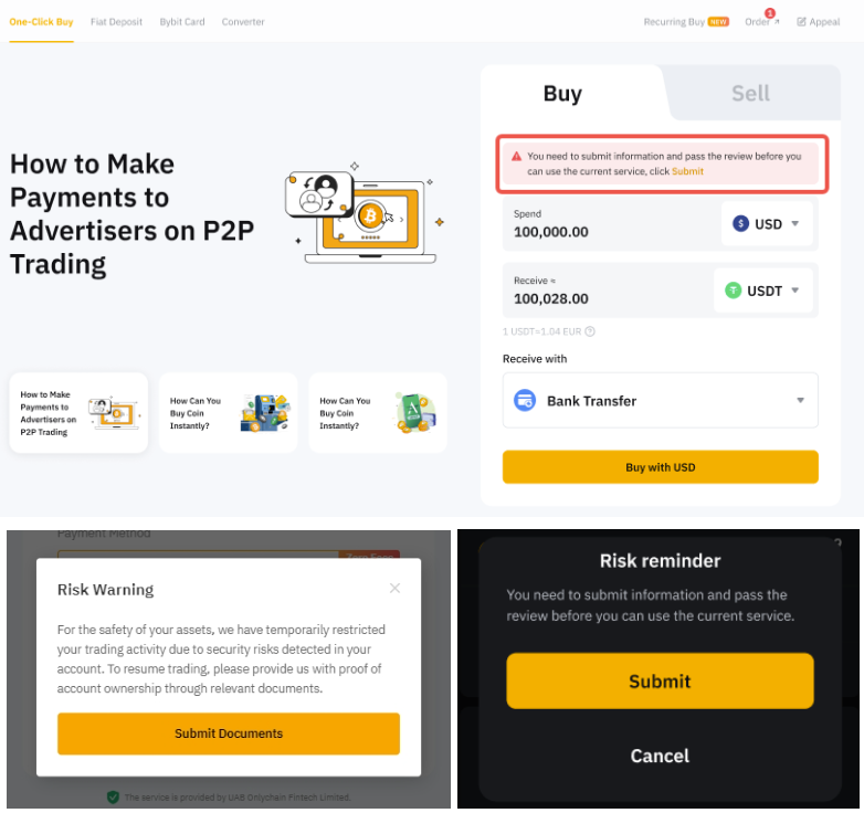 - Үшінші тарап төлемдерін пайдаланбаңыз: Тек жеке несие картаңызды немесе Bybit Kazakhstan жүйесінде жеке куәлігіңізге сәйкес келетін төлем әдістерін пайдаланыңыз.