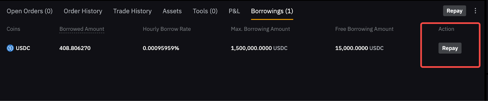 Левереж сауда жұбына емес, актив деңгейінде орнатылады. Мысалы, егер сіз USDC үшін левереж орнатсаңыз, ол USDC қарызға алынғанда (мысалы, BTC/USDC сатып алу үшін) қолданылады. Сол сияқты, егер сіз BTC үшін орнатсаңыз, ол BTC-ны сату үшін қарызға алған кезде қолданылады.