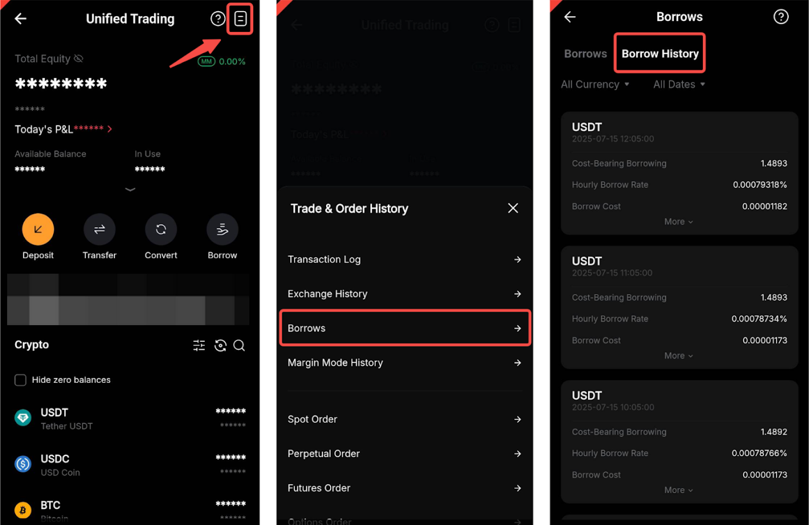 Деривативтер қарыздары: Бұл фьючерстер мен опциондар саудасынан алынған қарыздар, және олар іске аспаған/іске асқан PnL, сауда комиссиялары, пайыздар мен опцион сыйақыларын қамтуы мүмкін. Деривативтер қарыздарын өтеудің жолдары: