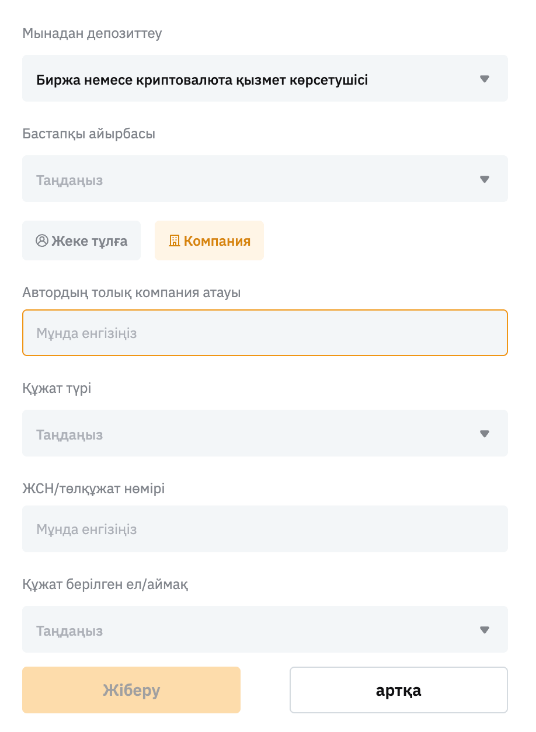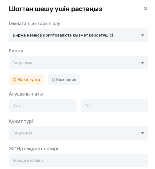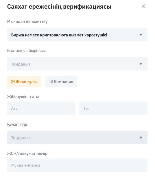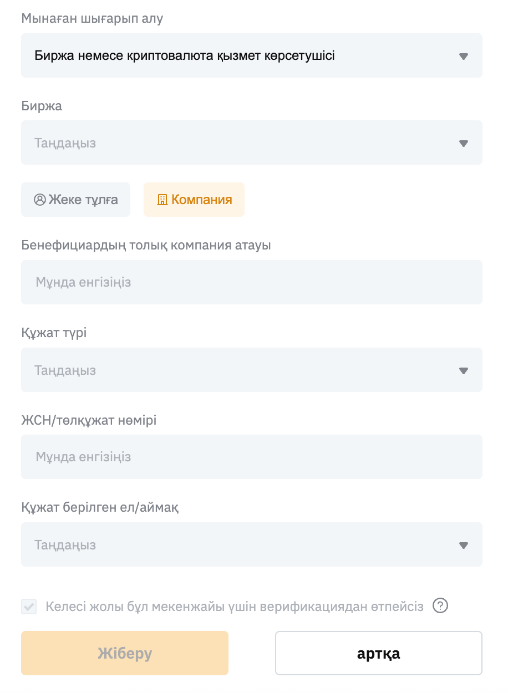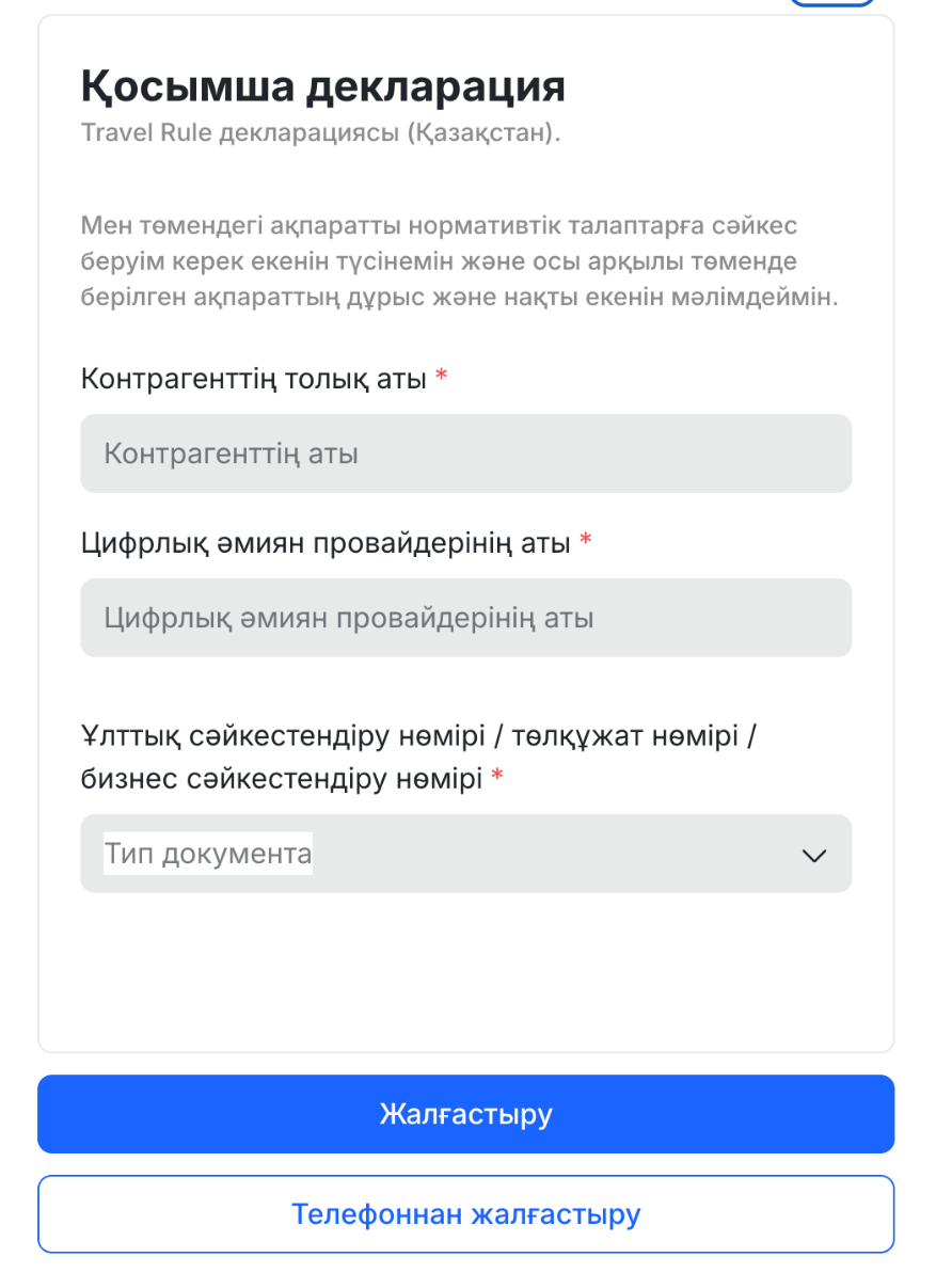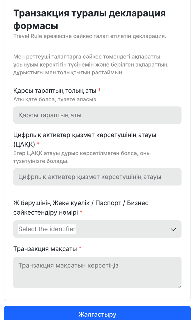 Travel Rule талаптарына сәйкес арнайы форма толтыру қажет болады.