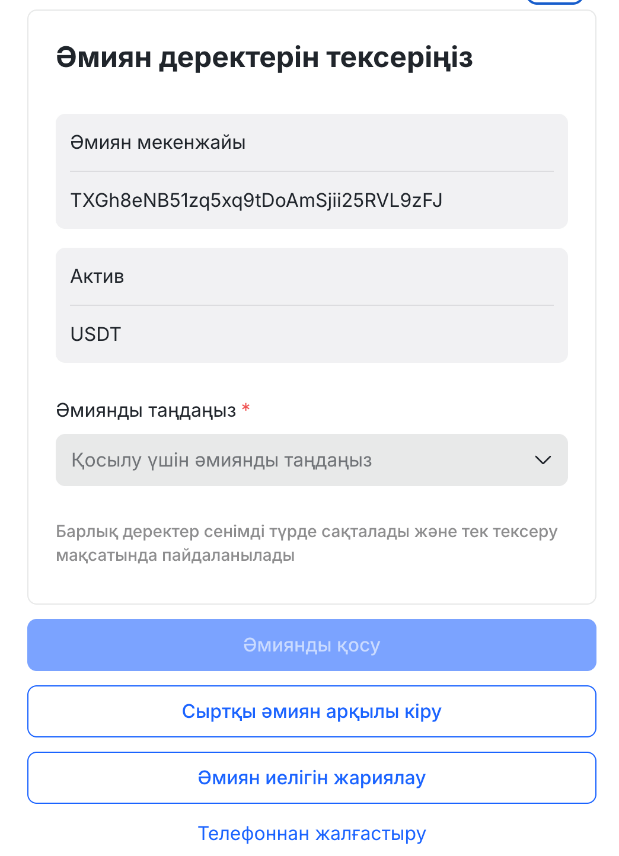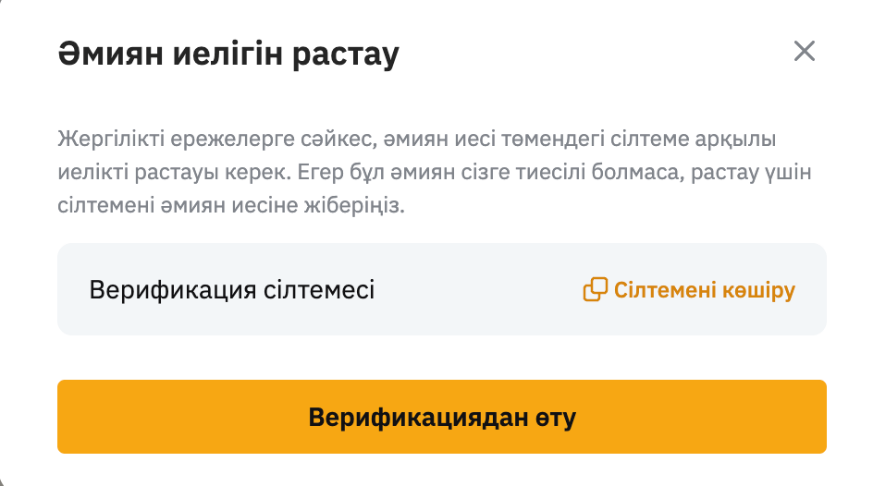Егер әмиян басқа тұлғаға тиесілі болса, растау процедурасынан өту үшін сілтемені әмиян иесіне жіберіңіз.