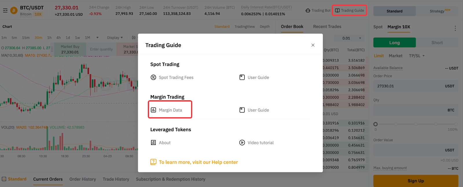 Спот маржиналдық сауда үшін: Сауда нұсқаулығы басыңыз → Маржа деректері соңғы пайыздық мөлшерлемелерді көре аласыз. Сондай-ақ, әртүрлі VIP деңгейлеріне арналған пайыздық мөлшерлемелерді де тексеруге болады.