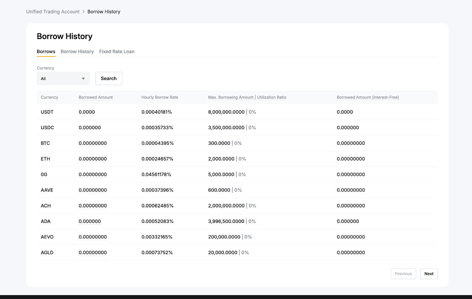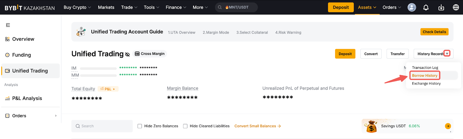 Балама түрде, Бірыңғай сауда аккаунты → Тарих жазбалары → Қарыз алу тарихы бөліміне өтіңіз. Бұл жерде сіз сағаттық пайыздық мөлшерлемені және қарыз алу бойынша барлық мәліметтерді көре аласыз.