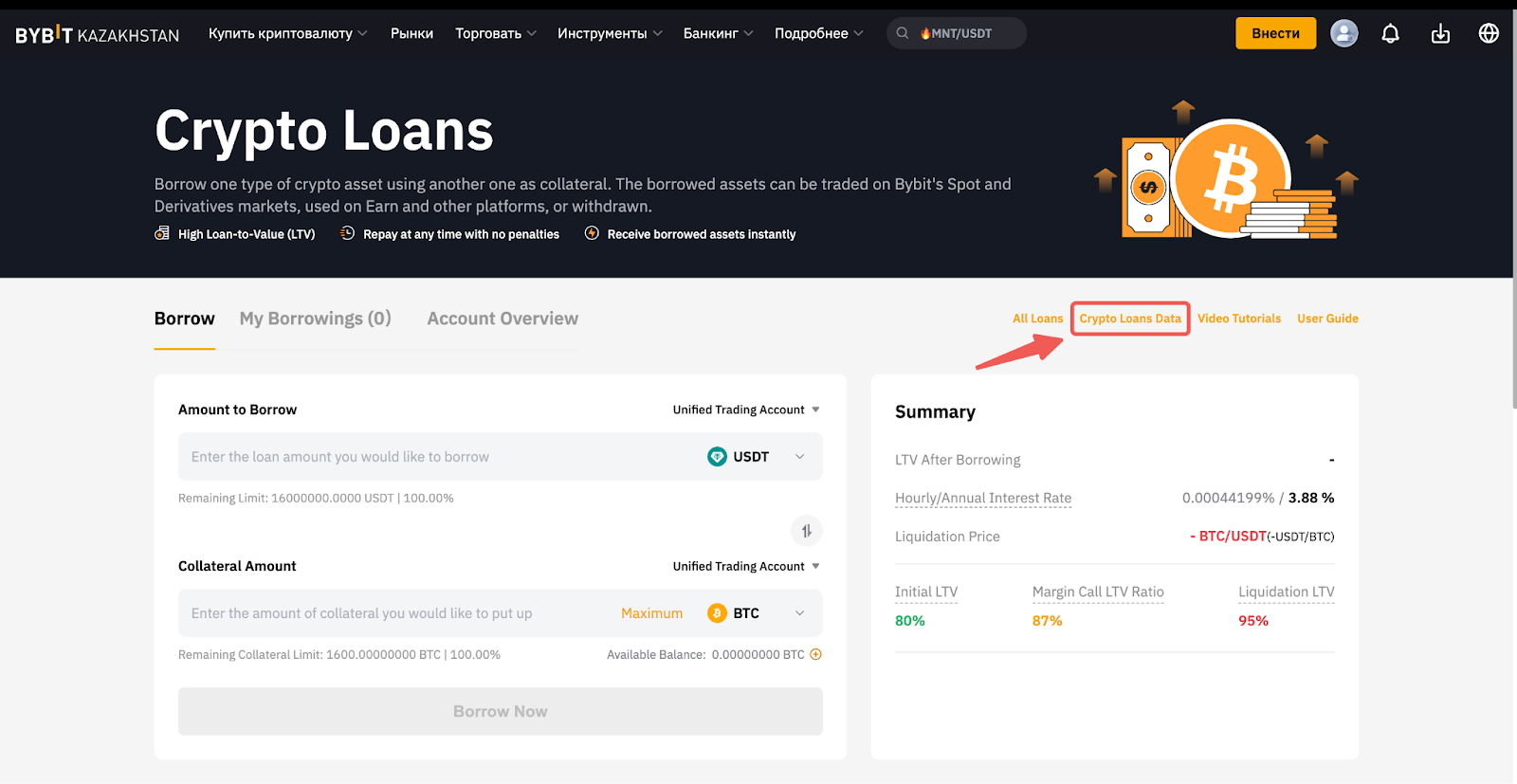 Bybit Kazakhstan-да қолданылатын барлық пайыздық мөлшерлемелерді мына Несиелер және Қарыздар бойынша Bybit Kazakhstan нарығына шолу беті арқылы таба аласыз. Сонымен қатар, бұл ақпаратқа өнім беттерінен де тікелей қол жеткізуге болады.