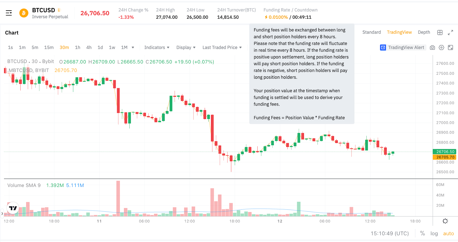 Қаржыландыру комиссиясы = 1,25 BTC × 0,01% = 0,000125 BTC