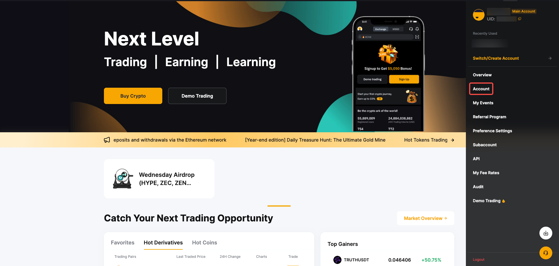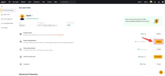 Электрондық пошта мекенжайын тіркелгіңізге байланыстыру өте ұсынылады. Бұл тіркелгіңіздің қауіпсіздігін арттырып қана қоймайды, сонымен қатар ақшаны алу, жүйелік электрондық пошта хабарландырулары, API басқару және т.б. сияқты қосымша мүмкіндіктердің құлпын ашады.