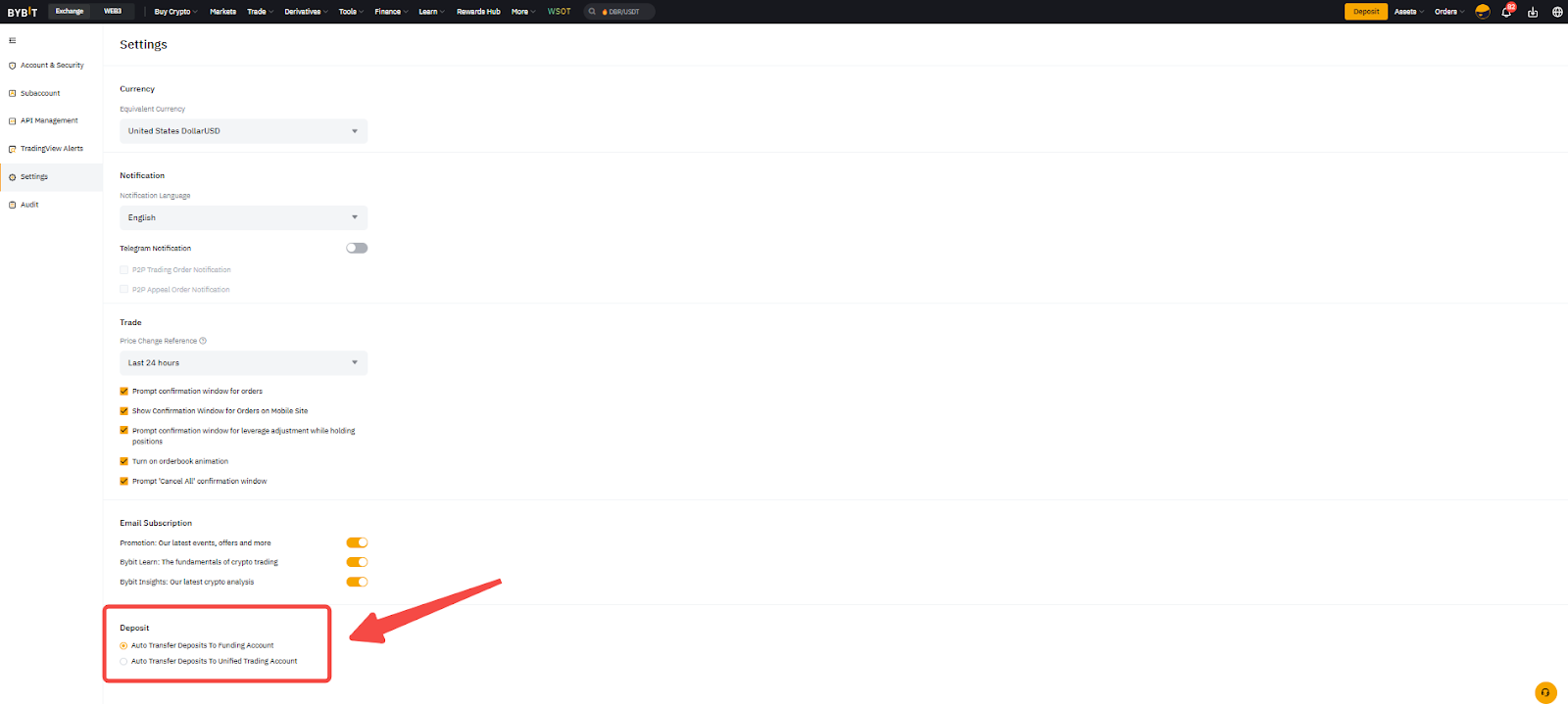 5-қадам: Депозит әдепкі бойынша Қаржыландыру шотыңызға аударылады. Әдепкі депозиттік шотыңызды өзгерту үшін оны келесі екі (2) жолмен орнатуға болады: