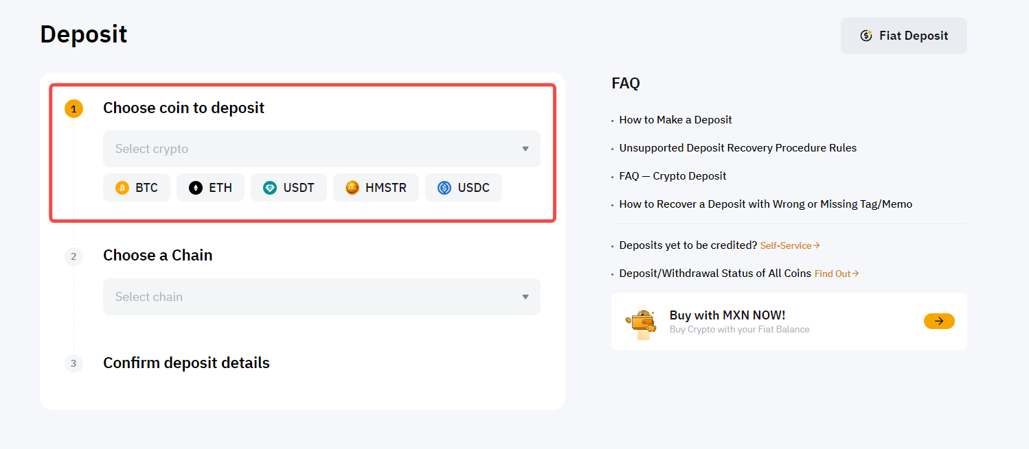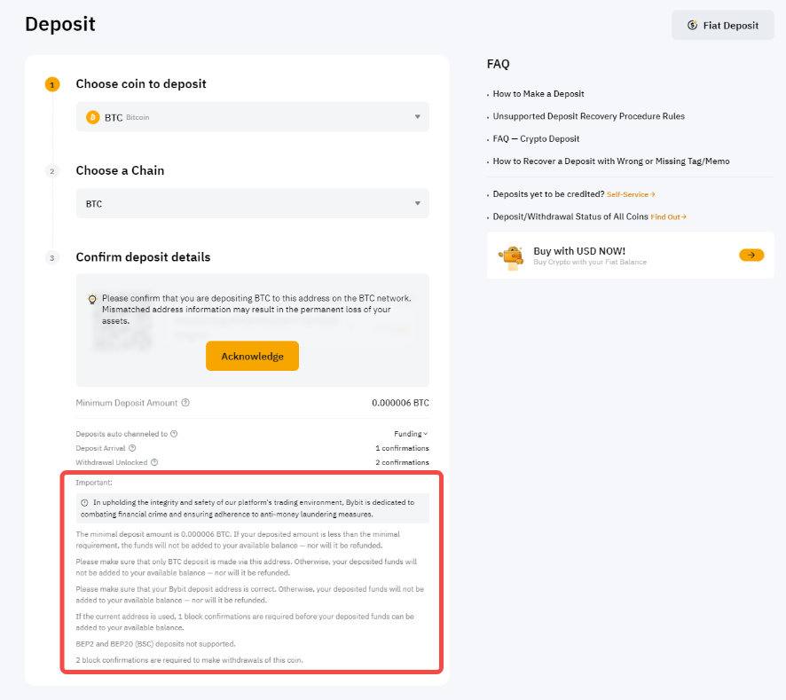 Криптографиялық депозит – бұл блокчейн транзакциясы арқылы сыртқы әмияннан немесе басқа биржадан Bybit Kazakhstan шотыңызға крипто аудару. Мұнда крипто депозитін қалай жасауға болатыны туралы қадамдық нұсқаулық берілген.