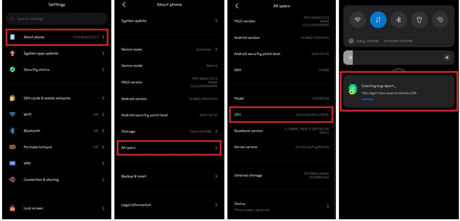 2-қадам: жылы Әзірлеуші опциялары беті, түймесін түртіңіз Қате туралы есеп алыңыз.