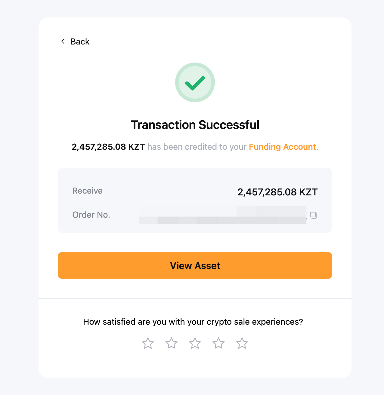 5-қадам: Сіз криптовалютаңызды теңгеге сәтті саттыңыз, оны сіздің Қаржыландыру шоты.