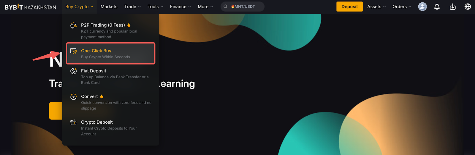 Bybit Kazakhstan сайтындағы бір рет басу арқылы сатып алу пайдаланушыларға теңге фиат валютасын пайдаланып криптовалютаны сатып алуға және сатуға мүмкіндік береді Fiat балансы. Дегенмен, Bybit Kazakhstan сайтында тек BTC, ETH, USDT және USDC ғана қолдау көрсетіледі.