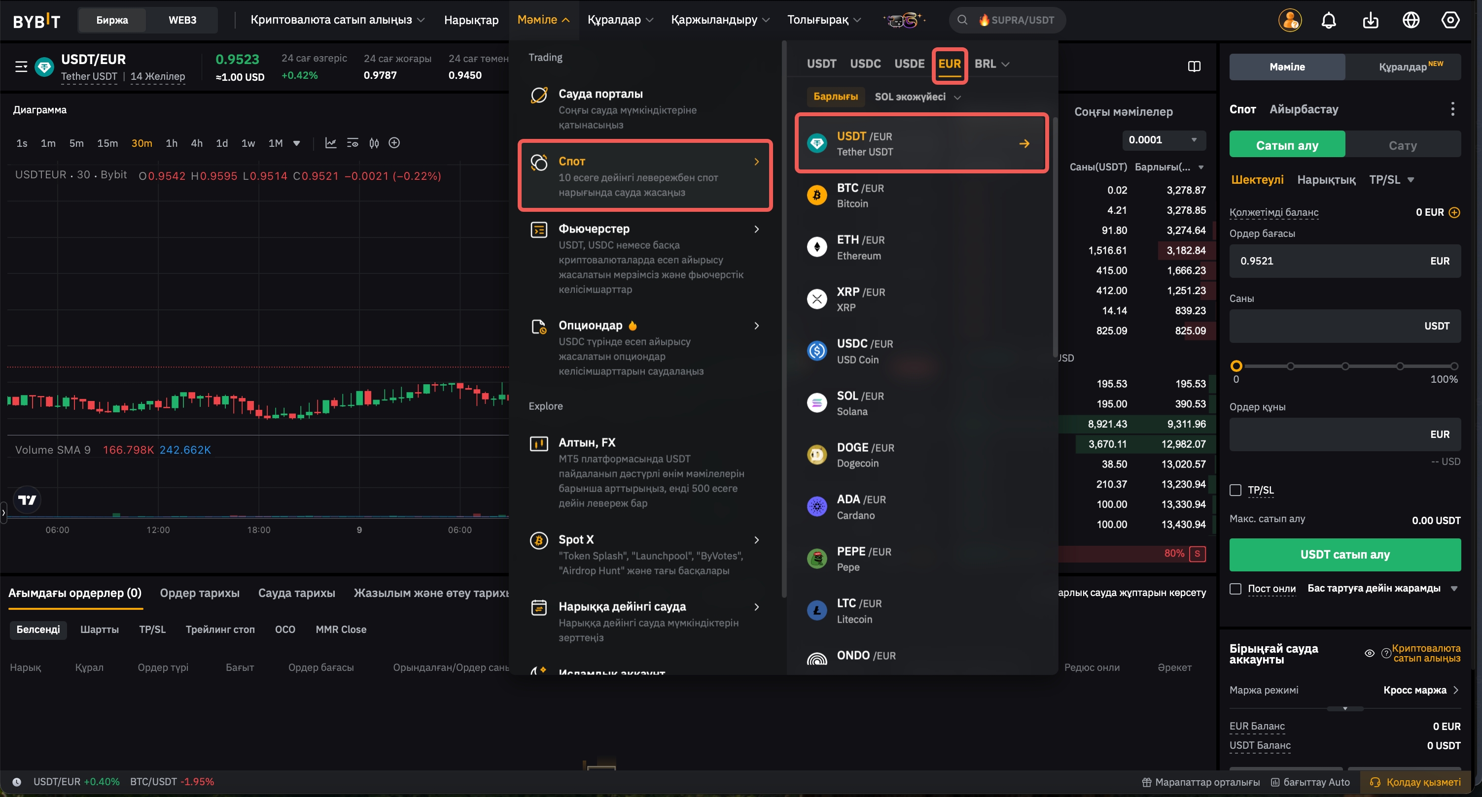 — Спот ордерлерін орналастыру жолы туралы қосымша мәліметтер алу үшін Спот саудасын бастау жолы бөлімін қараңыз.